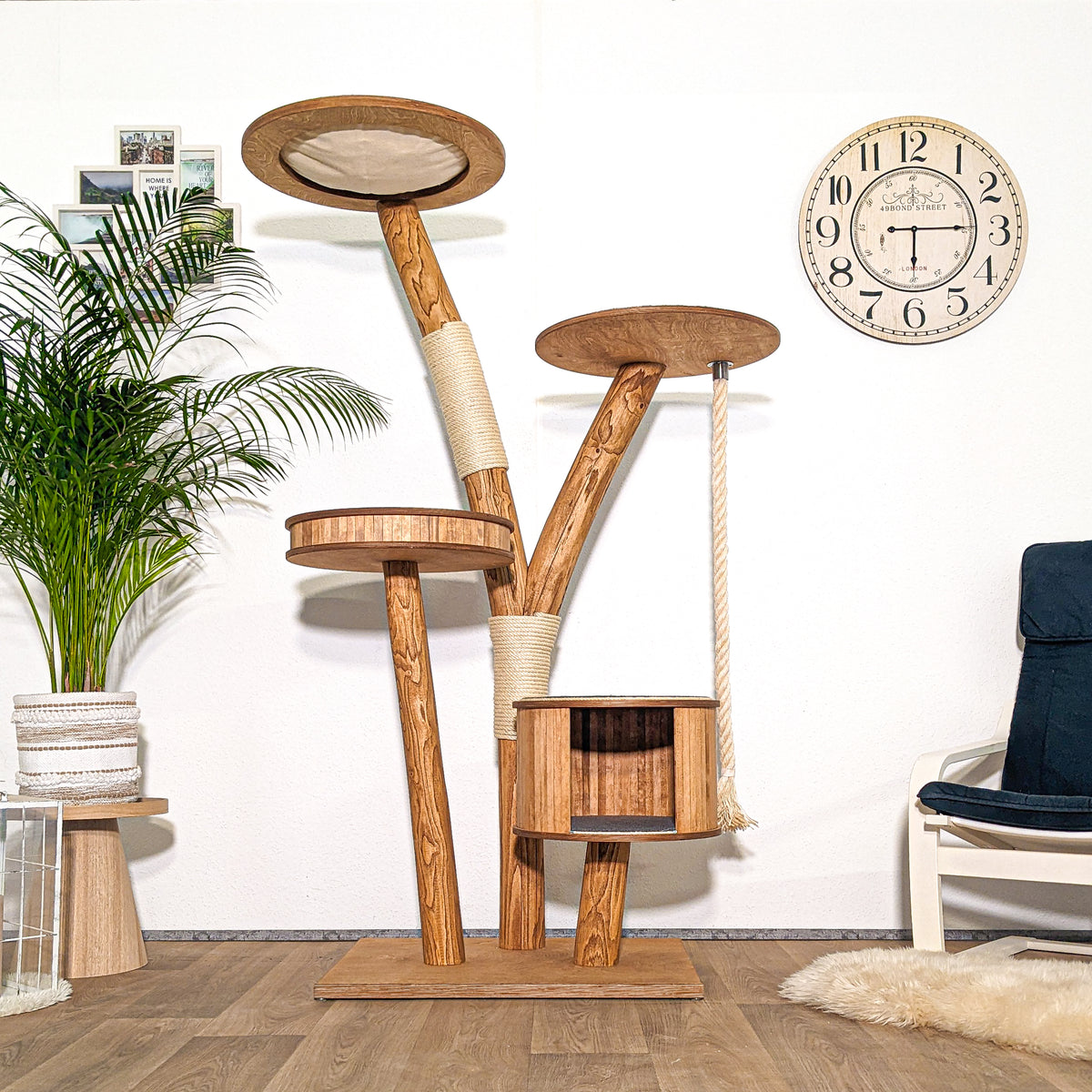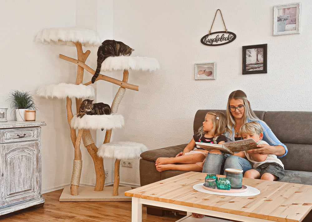 Sie erhalten ein einzigartiges und handgefertigtes Unikat, welches so kein zweites Mal zu finden ist. Die Natur bestimmt das zeitlose Design und wir holen für Sie noch das Maximum an Funktionalität und Standfestigkeit heraus. Bei uns bekommen Sie einen richtigen Kratzbaum, der den Namen auch verdient hat. Ein professionelles Möbelstück, das man gerne seinen Freunden und der Familie zeigt.