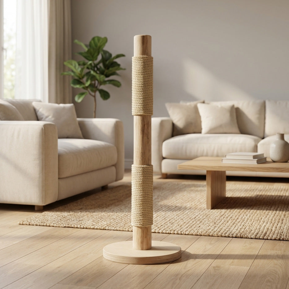 Dieser Kratzbaum wurde aus entrindetem und naturbelassenen Hartholz gefertigt.