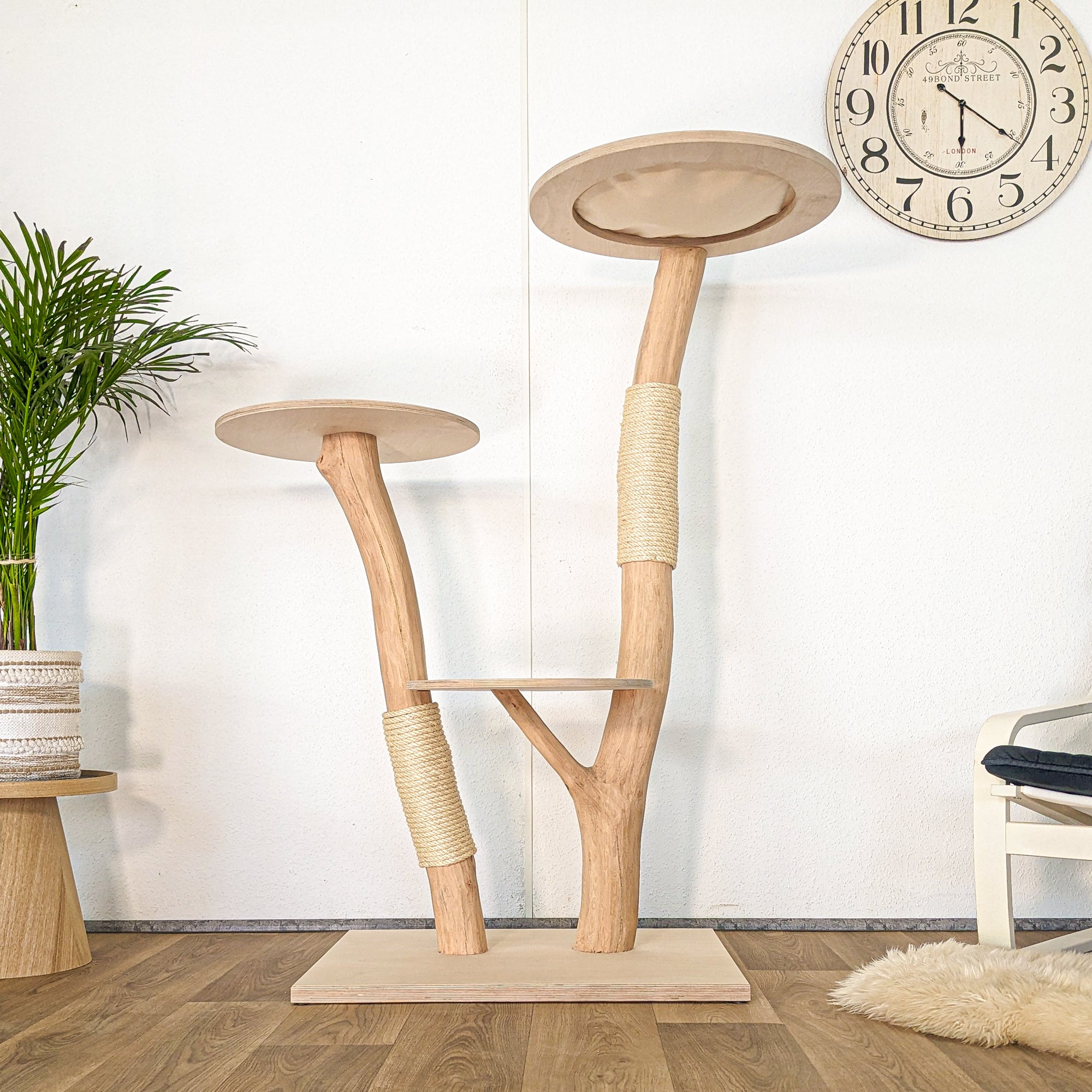 Dieser Kratzbaum wurde aus entrindetem und naturbelassenen Hartholz gefertigt.