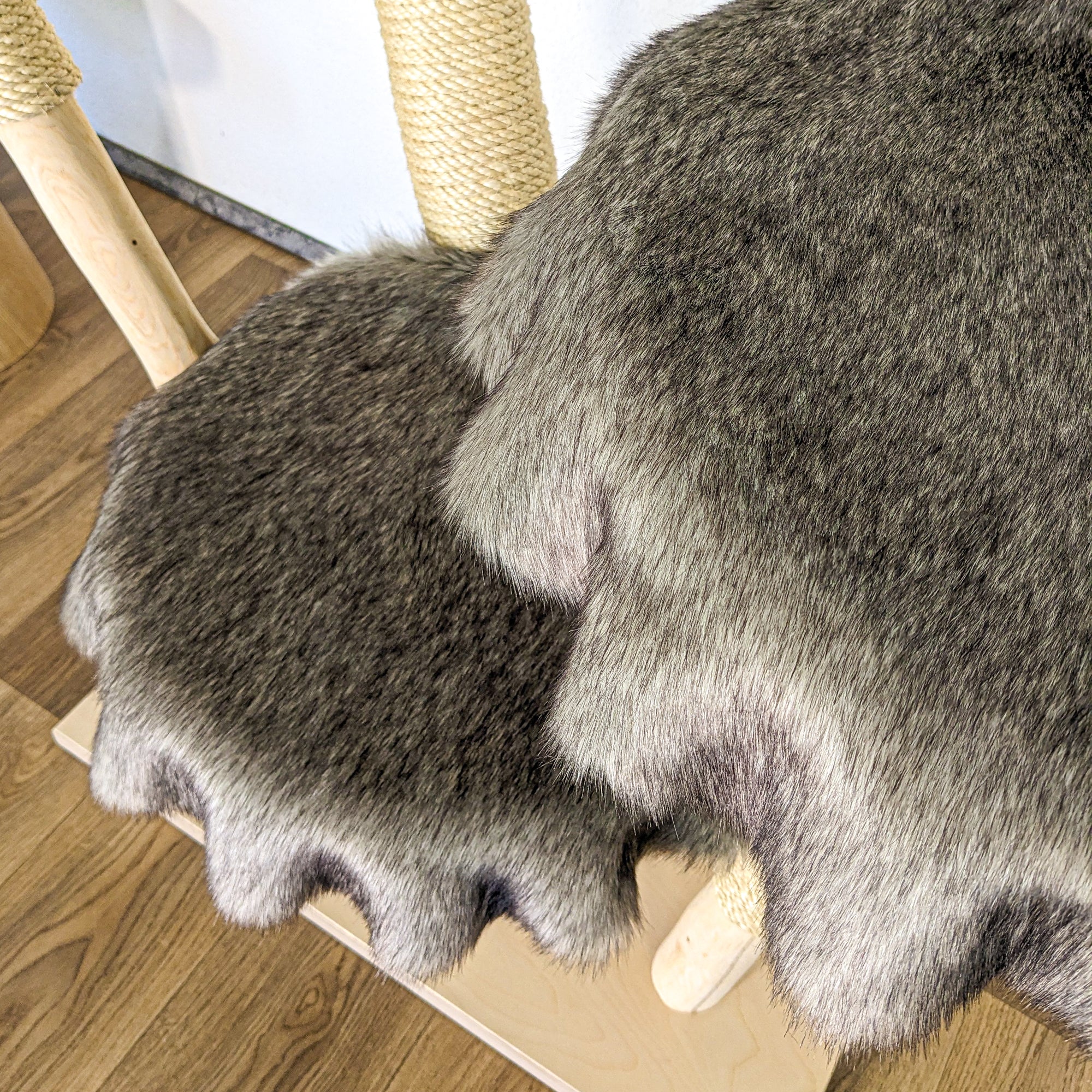 Der Kratzbaum wird mit hochwertigen und kuscheligen Bezügen aus Webfell (künstlich) ausgestattet. Sie können die gewünschte Farbe auswählen. Die Bezüge werden mit Druckverschlüssen befestigt, lassen sich einfach abnehmen und schonend waschen.